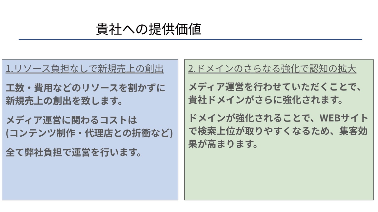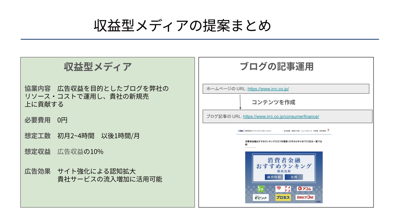 「ホームページ上に、完全無料で収益型メディアを構築」するという取り組みを進めており、