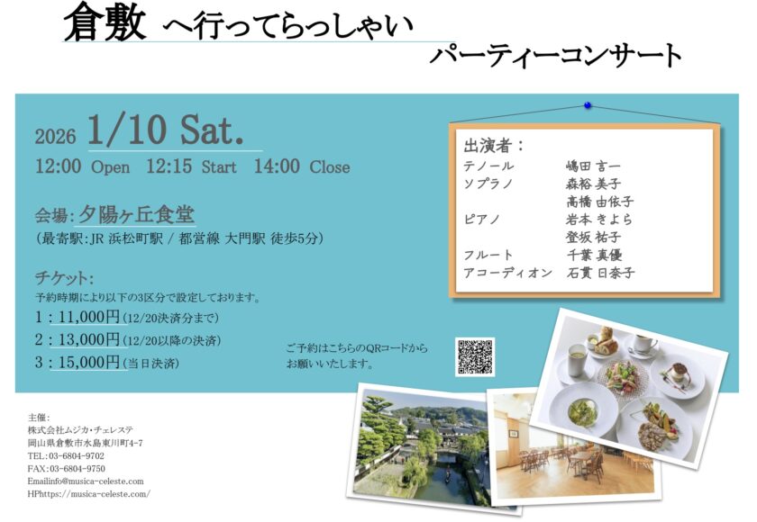 2026年1月10日(土)ランチタイムに開催予定の「倉敷へ行ってらっしゃいパーティコンサート」
