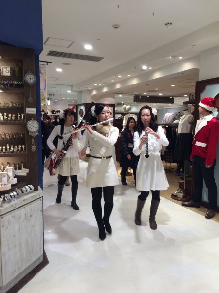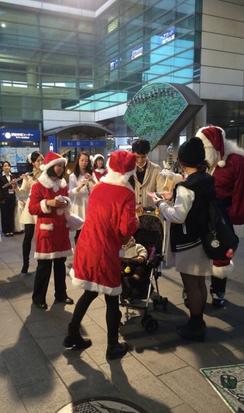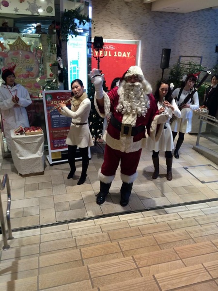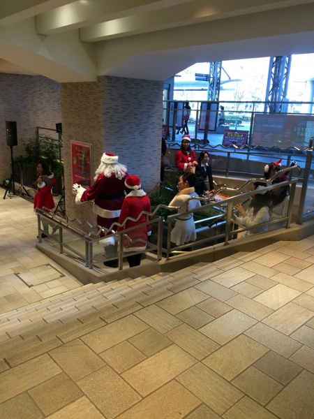 館内や外を含め約30分程、サンタさん・サンタガール・トナカイさんと一緒に演奏しながら練り歩いてもらいました。